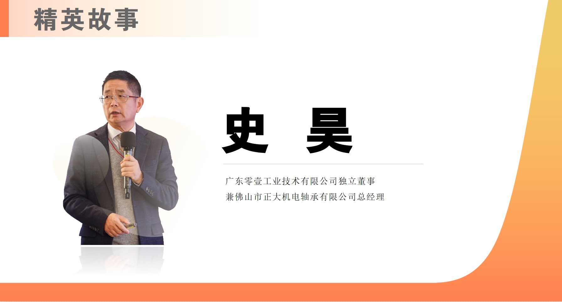 佛山市正大機(jī)電軸承有限公司 總經(jīng)理;廣東零壹工業(yè)技術(shù)有限公司 獨(dú)立董事
