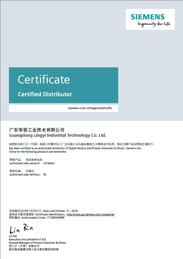 華北區(qū)(RN)西門子標(biāo)準(zhǔn)電機(jī)(LD Motor)授權(quán);