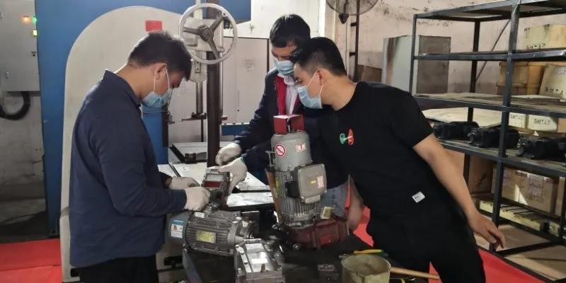 我司工程師在檢測(cè)及維修故障的減速電機(jī)