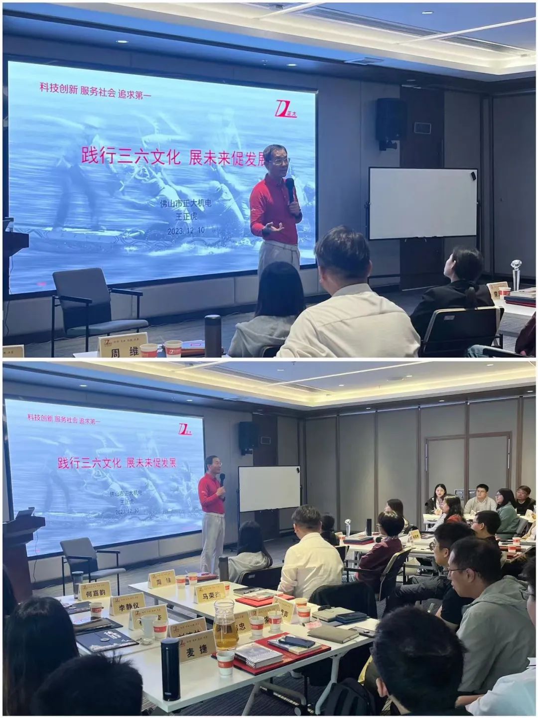 下午15:00-17:45,進(jìn)行本次結(jié)業(yè)系列活動的壓軸環(huán)節(jié)——“踐行三六文化 展未來促發(fā)展”交流會,本次交流會是繼儲備干部班在佛山南國桃園、江門鶴山后,第3次有幸邀請到正大機(jī)電創(chuàng)始人王正虎總裁蒞臨現(xiàn)場指導(dǎo)。