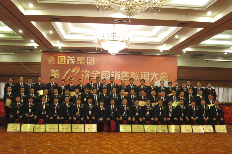 國茂集團董事長徐國忠(前右十)、總經理兼財務總監(jiān)沈惠萍(前左八)與全國各銷售分公司總經理合影(前右八為林藝總經理)