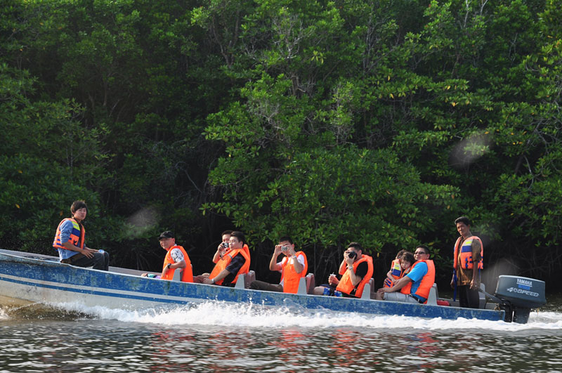 來(lái)到民丹島怎么能不去紅樹(shù)林探險(xiǎn)呢,我們坐著小船,駛?cè)肓艘黄嫉臉?shù)林,在這里,景色是那么的自然,完全沒(méi)有人為的雕飾,河道越來(lái)越窄,兩旁的紅樹(shù)愈顯茂密,越是深入,紅樹(shù)的根的形狀也跟著變化,時(shí)不時(shí)還能看到歇息在樹(shù)上的松鼠、蜥蜴、蛇以及跳躍在樹(shù)上的猴子。