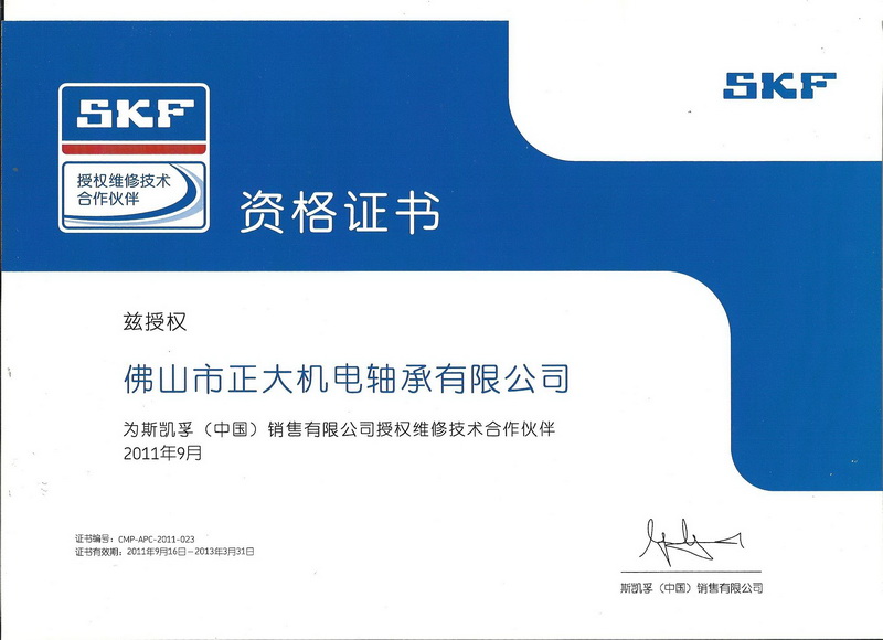 在此次盛會中,佛山市正大機電軸承有限公司榮獲了“斯凱孚(中國)有限公司授權維修技術合作伙伴資格證書”,成為了屈指可數(shù)的 SKF CMP(SKF授權的維修技術合作伙伴)成員之一。SKF授權的維修技術合作伙伴,是從SKF授權經銷商中挑選出來,經過SKF專業(yè)化訓練,具有足夠的能力運用最先進的技術手段,為客戶提供工業(yè)維修服務的合作組織。它可以充分利用SKF在全球各行業(yè)近百年的知識資源,共同為客戶提供最優(yōu)質的增值服務。(人力資源部 鐘智仙)