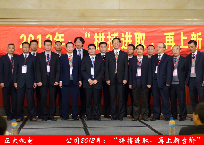 2012年1月14日,正大機(jī)電公司2011年終總結(jié)暨2012年經(jīng)濟(jì)責(zé)任制簽訂大會(huì)在佛山金城大酒店隆重舉行。由正大機(jī)電公司下屬子公司佛山正大機(jī)電配套有限公司、佛山正大機(jī)電軸承有限公司、佛山市正一大自動(dòng)化有限公司、佛山市正一大電氣有限公司、上海正依大公司等單位領(lǐng)導(dǎo)和員工共計(jì)397人出席了此次盛會(huì)。