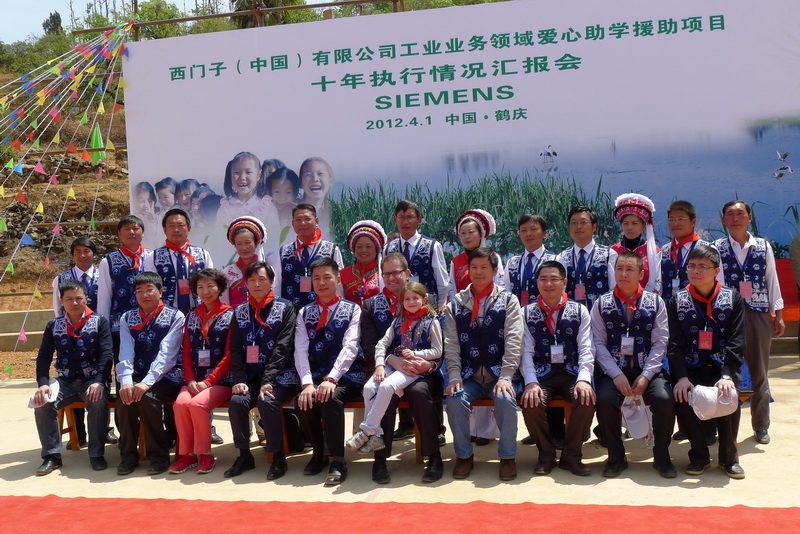 4月1日上午云南省麗江市鶴慶縣的一個很偏遠的小山村用她們較為特殊的禮節(jié)迎來一批遠道而來的愛心人士:西門子(中國)有限公司CEO吳和樂博士及家人,西門子(中國)有限公司工業(yè)業(yè)務(wù)領(lǐng)域驅(qū)動技術(shù)集團機械傳動部總經(jīng)理和援凱先生,西門子(中國)有限公司工業(yè)業(yè)務(wù)領(lǐng)域工業(yè)銷售分銷商管理部總經(jīng)理楊雪峰先生,廣東零壹工業(yè)技術(shù)有限公司總經(jīng)理林藝先生以及汕頭眾業(yè)達、蘇州蘇西電、南京鼎陽、上海大華、南京朗馳、北京天拓四方等西門子分銷商負責(zé)人一行,在鶴慶縣縣長陪同下前往該縣走訪“由西門子與合作伙伴希望工程項目”,該項目是在2002年由西門子工業(yè)自動化與驅(qū)動技術(shù)集團 (IA&DT) 發(fā)起,并與西門子的商業(yè)合作伙伴一道,在云南偏遠地區(qū)組建的一項愛心募捐活動。主要是幫助該地區(qū)的中小學(xué)改善教育基礎(chǔ)設(shè)施以及資助特別困難的學(xué)生。在過去的10年中,IA&DT和合作伙伴們幫助當(dāng)?shù)亟⒘藢W(xué)校,宿舍樓,食堂和圖書館。并且,還資助了鶴慶很多貧困家庭的學(xué)生。在這十年中,共同資助了4500名,包括了黃平,柳河,松桂,西儀和金盾等地的貧困學(xué)生。