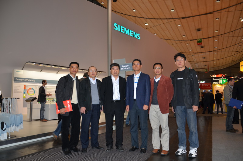 德國漢諾威工業(yè)展西門子展區(qū)前合影(從左至右:林永源、雷玉強(qiáng)、付強(qiáng)、王正虎、雷勝初、于洋)