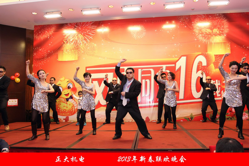 最震撼的要數(shù)《詠春Style》節(jié)目,柔中帶剛的詠春拳后,引出時(shí)下最流行、最火爆的舞蹈《江南style》,表演者由集團(tuán)總裁助理雷玉強(qiáng)、集團(tuán)財(cái)務(wù)總監(jiān)高峰、新尚公司總經(jīng)理杜海宇、正一大自動(dòng)化公司總經(jīng)理彭勁松等正大機(jī)電公司高管、以及來(lái)自各分子公司的英俊“鳥叔”、《舞動(dòng)青春》節(jié)目中的四位美女、和可愛的員工子女代表組成,這樣一個(gè)臨時(shí)組成的表演團(tuán)隊(duì),用惟妙惟肖的動(dòng)作、夸張的表情,在全場(chǎng)觀眾的熱烈掌聲中把晚宴現(xiàn)場(chǎng)的歡樂(lè)氣氛推向了高潮。