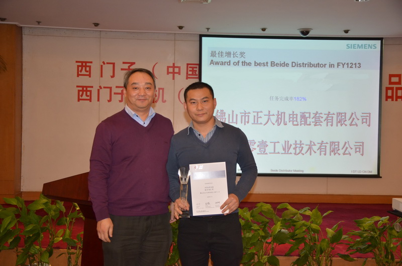 會議上,西門子電機(jī)(中國)有限公司各部門的領(lǐng)導(dǎo)分別介紹了2013/2014財(cái)年第一季度的業(yè)務(wù)、商務(wù)和物流等情況,同時公布了貝得通過了CQC的絕緣機(jī)構(gòu)的重大消息,也重點(diǎn)地提出了在搬新工廠期間對經(jīng)銷商的一些具體要求。會議的最后,西門子向在2012/2013財(cái)年最佳貝得經(jīng)銷商頒發(fā)獎項(xiàng),廣東零壹工業(yè)技術(shù)有限公司在眾多合作單位中脫穎而出,以182%的任務(wù)完成率,拿到了增長第一名的成績,喜獲“最佳增長獎”,這是繼2011/2012財(cái)年獲得“最佳開拓獎”以來又一個榮譽(yù)稱號。我司在2011年開始代理貝得電機(jī),至今達(dá)兩年時間,一直均保持著較快的增長。