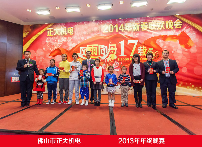 晚宴開始前,由廣東零壹工業(yè)技術(shù)公司林藝總經(jīng)理為本次晚宴致辭,接下來分別是正大機(jī)電公司最大的合作伙伴——西門子(中國)有限公司廣州分公司李士光總監(jiān)、正大機(jī)電公司王正虎總裁致辭;隨后,公司對優(yōu)秀員工進(jìn)行了獎勵,對2013年度“下一代培養(yǎng)與公益基金”的運行情況進(jìn)行了匯報,并對獲得年度“下一代培養(yǎng)基金”獎勵的員工子女頒獎;在麥大掌董事長給新股東頒發(fā)股權(quán)證,并為晚宴致辭后,主持人宣布晚宴正式開始。