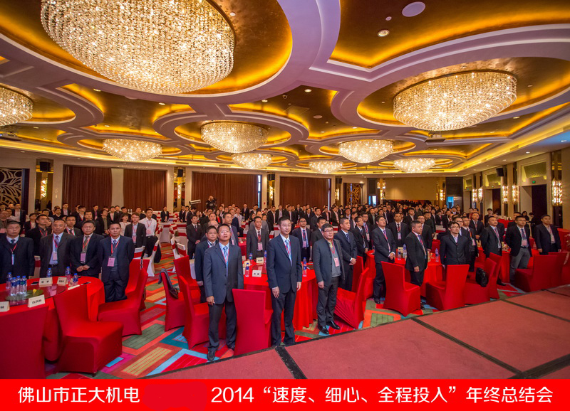 2015年2月14日(星期六)下午,以"速度、細(xì)心、全程投入"為主題的正大機(jī)電公司2014年終總結(jié)大會(huì)暨頒獎(jiǎng)儀式,在佛山市恒安瑞士大酒店六樓羅薩峰宴會(huì)廳隆重舉行。正大機(jī)電公司麥大掌董事長(zhǎng)、王正虎總裁、以及正大機(jī)電公司下屬各單位的領(lǐng)導(dǎo)和員工代表約350人出席了此次大會(huì)。